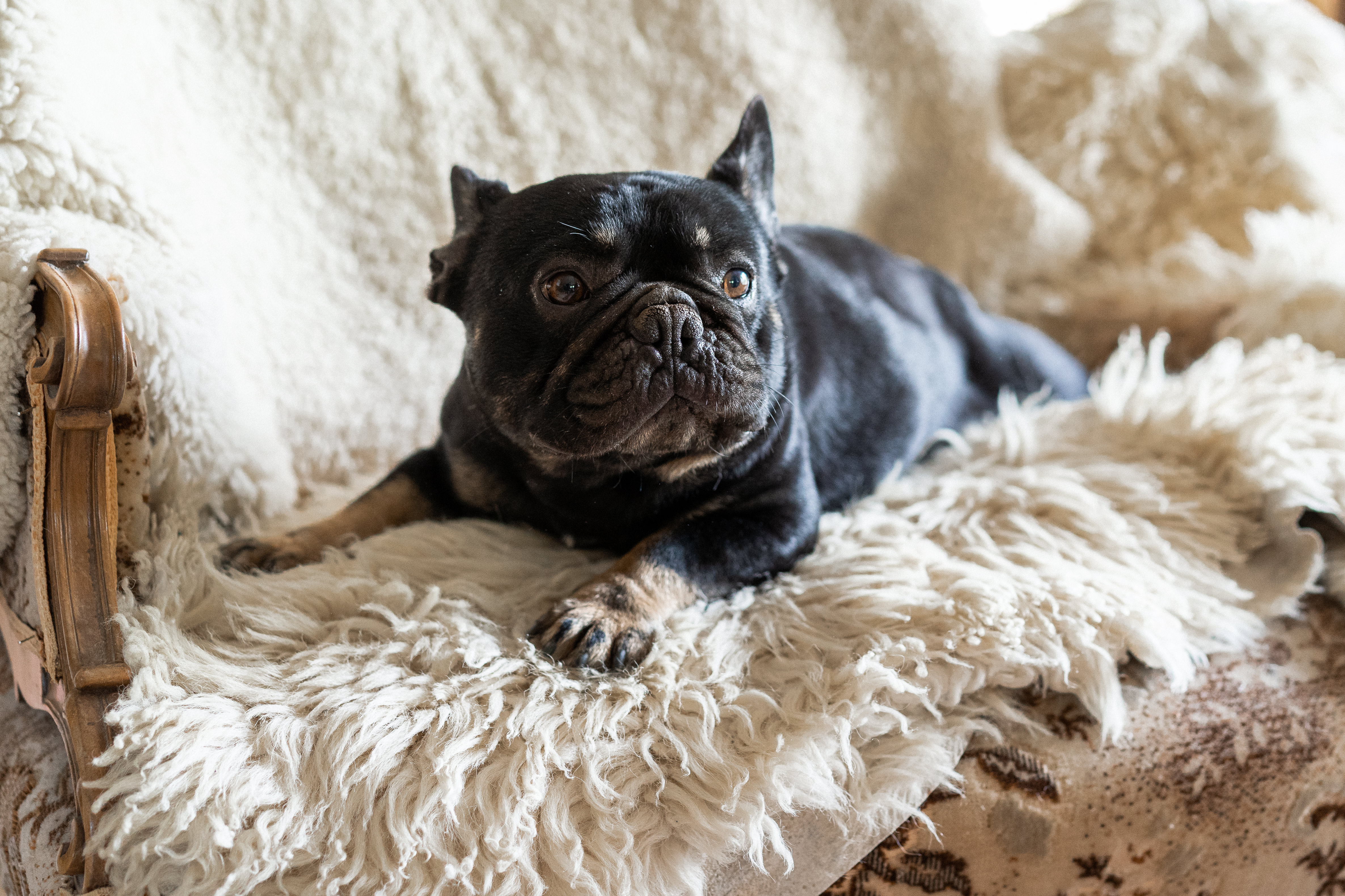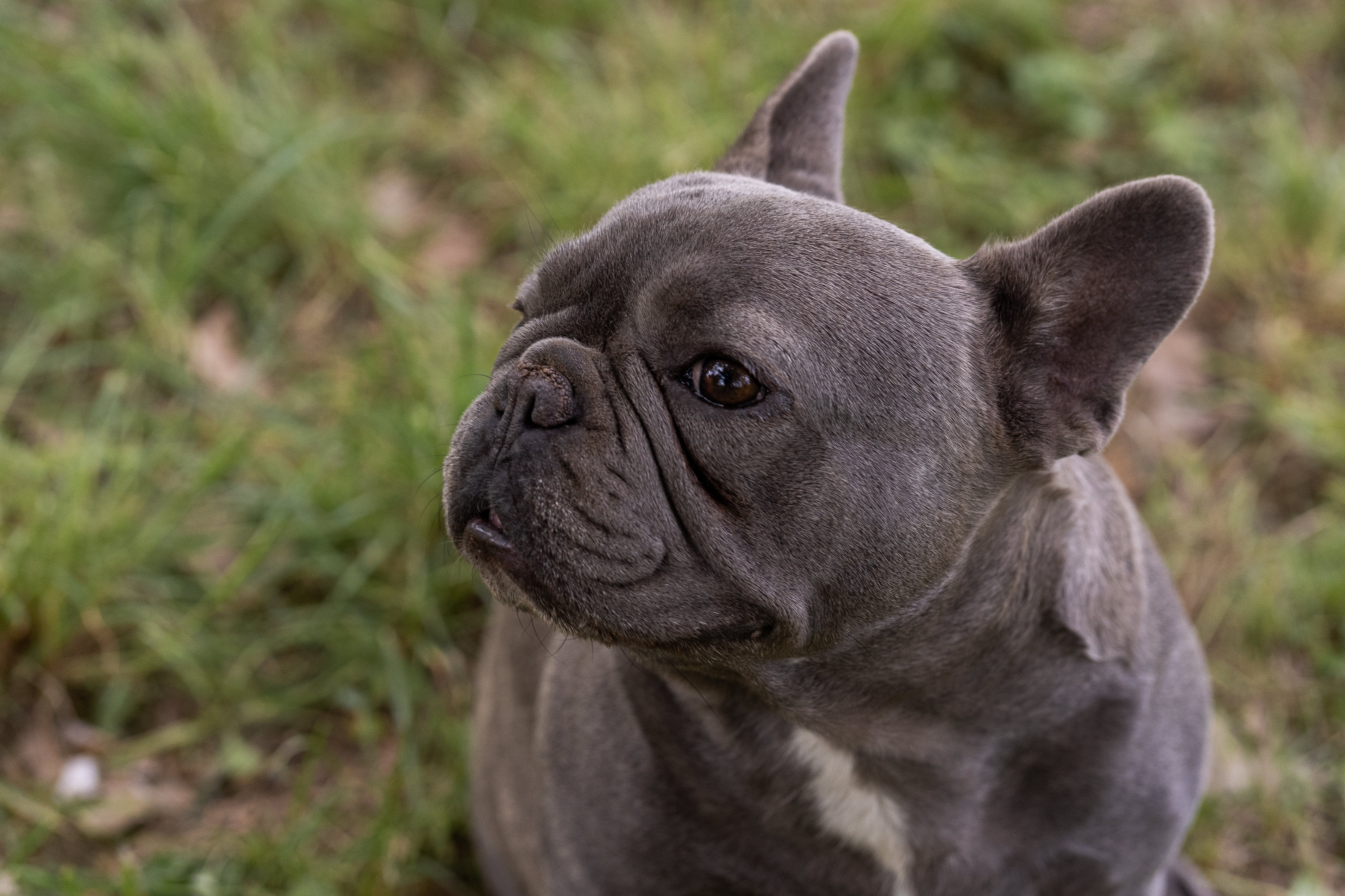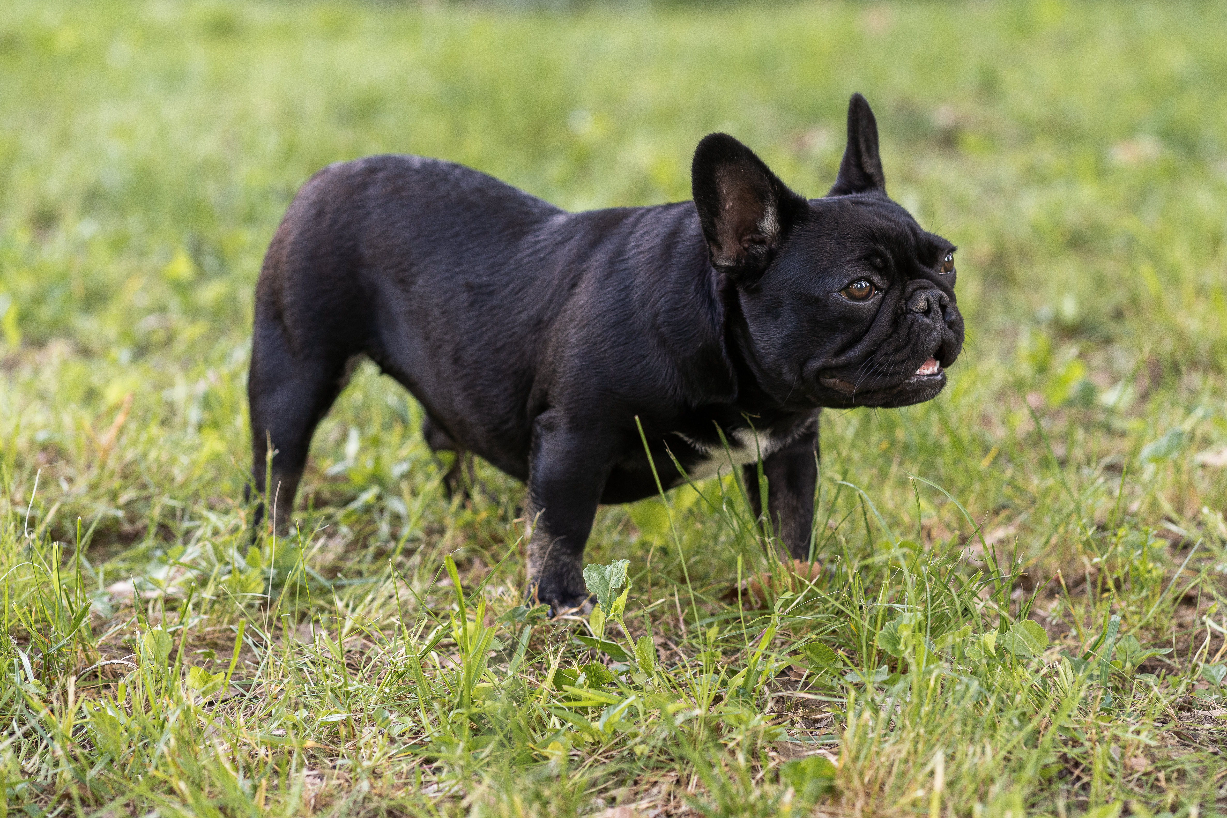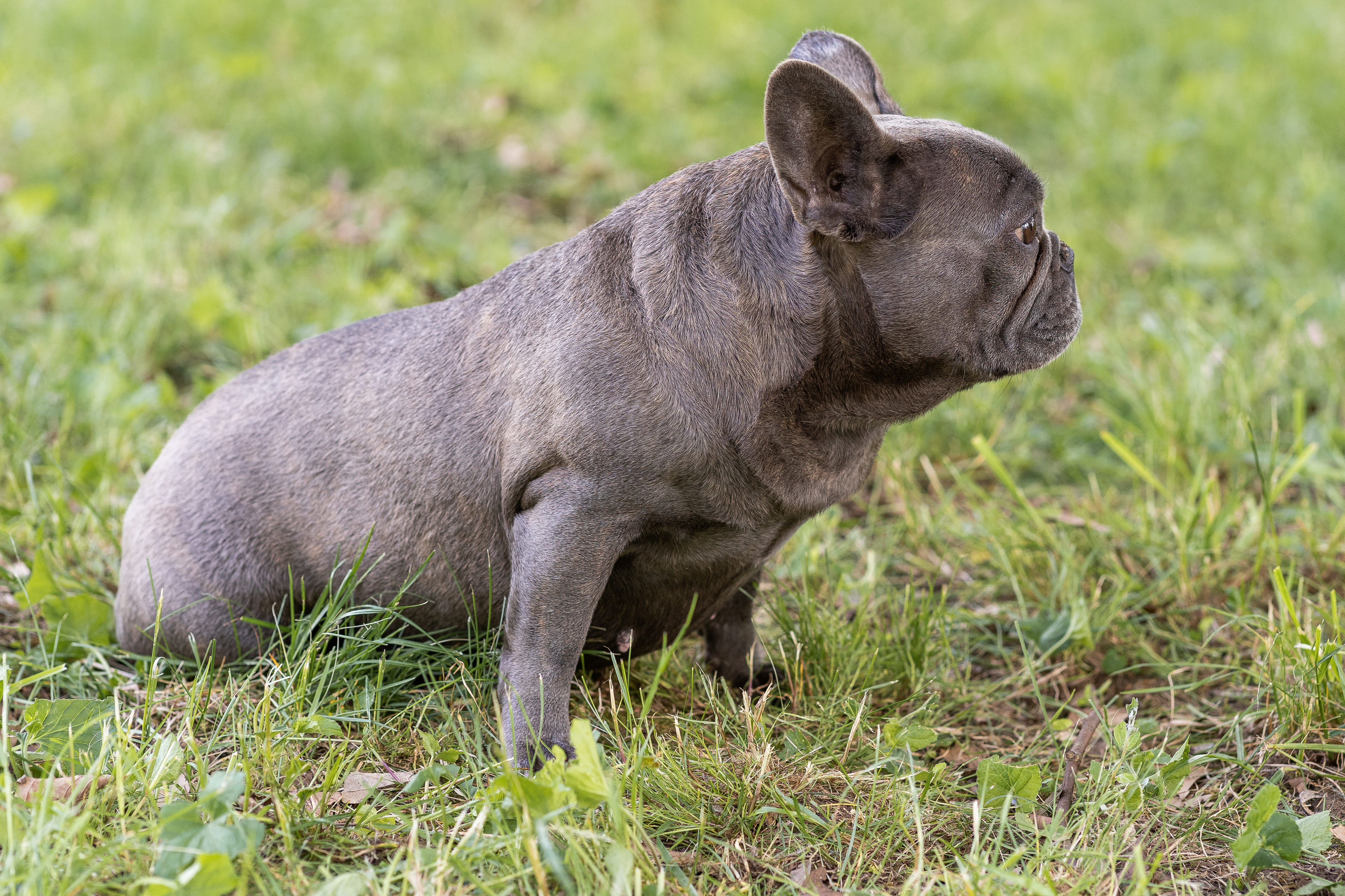 Zömök, standard típusú francia bulldog. Szeret barangolni és csavarogni, okos, kedves, állhatatos, akárcsak a testvére.